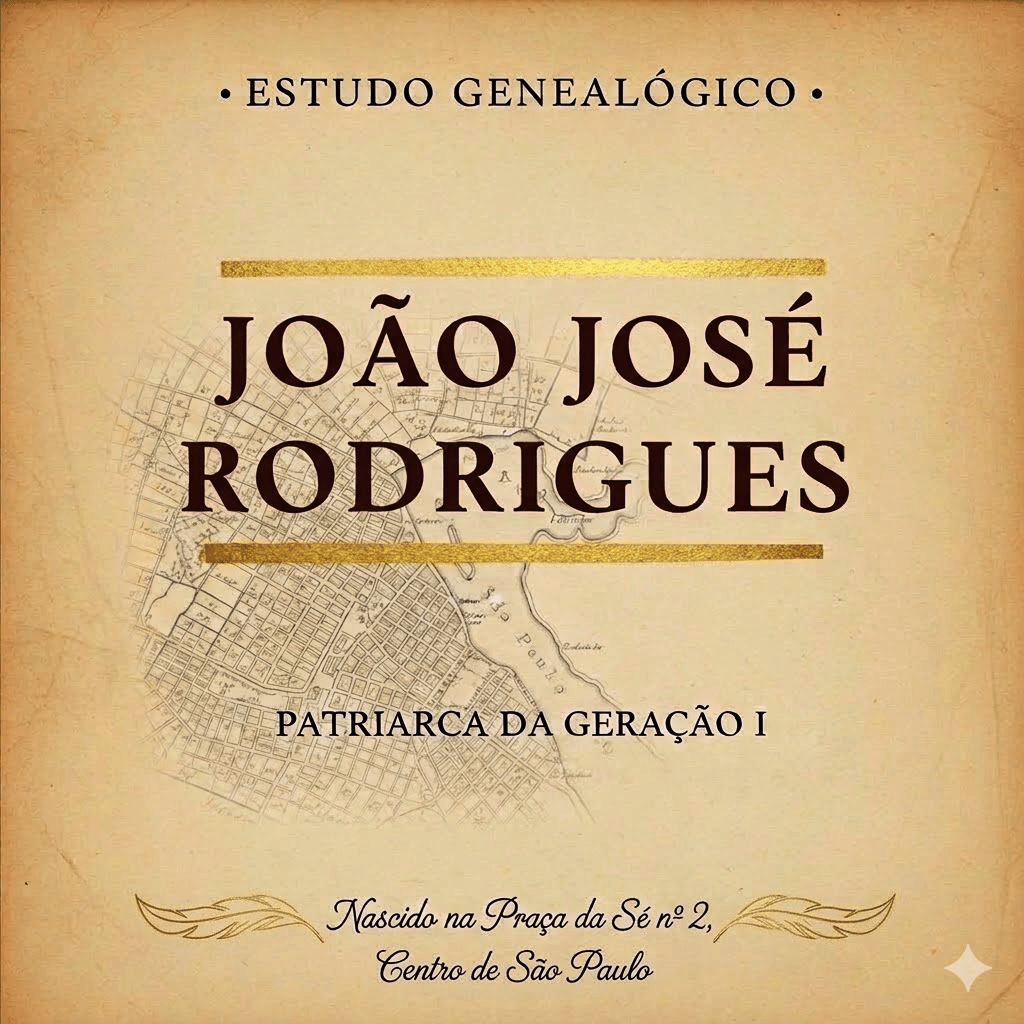 SUA ORIGEM E ASCENDÊNCIA Filho do Capitão Jesuíno José Rodrigues, nascido em 1800 e de Beralda Francisca da Pureza, nascida em São Paulo pelo ano de 1799. Seu avô paterno, era o Capitão João José Rodrigues da Silva, natural de Guarulhos, casado que foi em Sorocaba com Gertrudes Thereza Gonçalves. Seu assento de batismo é curioso: Livro 36 de Batismos da Sé de São Paulo,